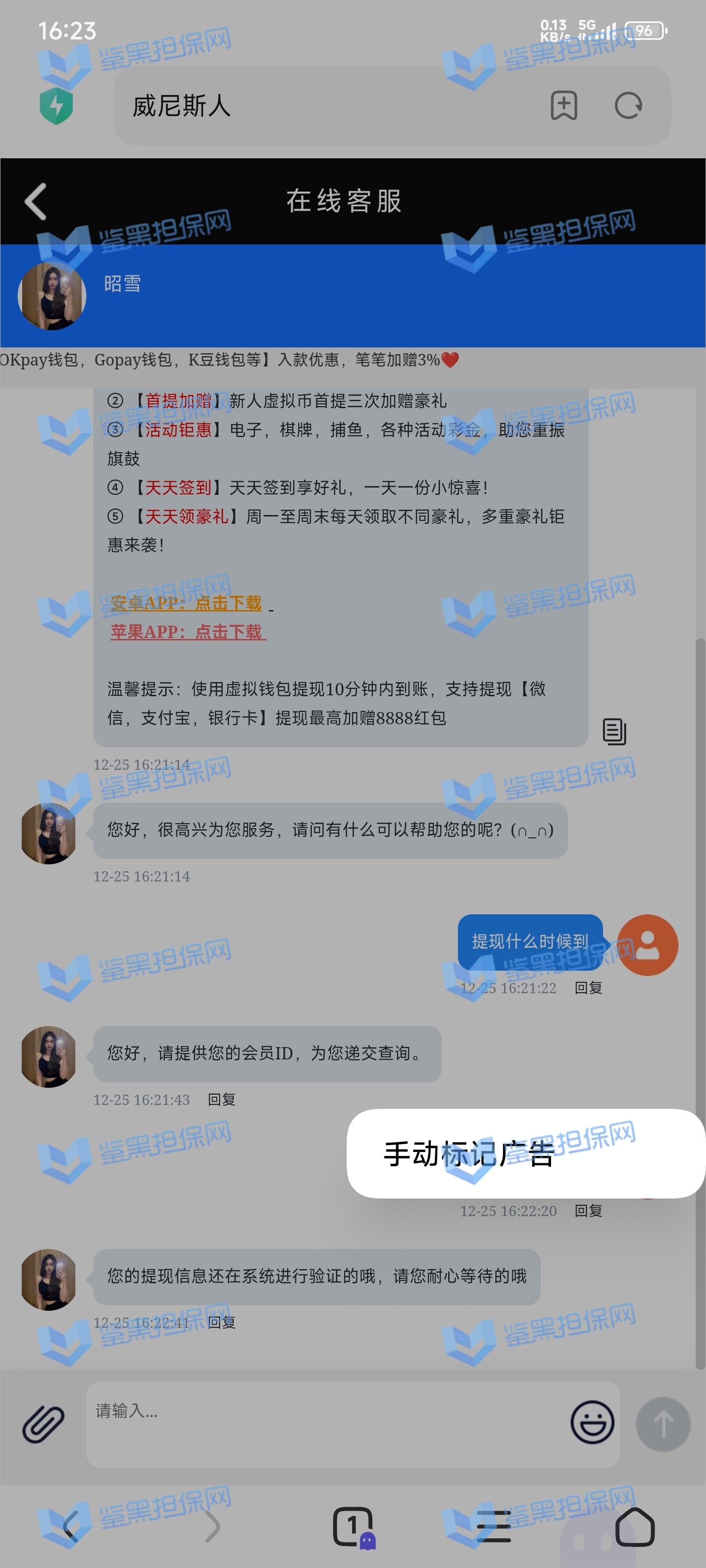 4.用户提交维权需为本人提交,若代替让人发布维权鉴黑担保网将拒绝受理;