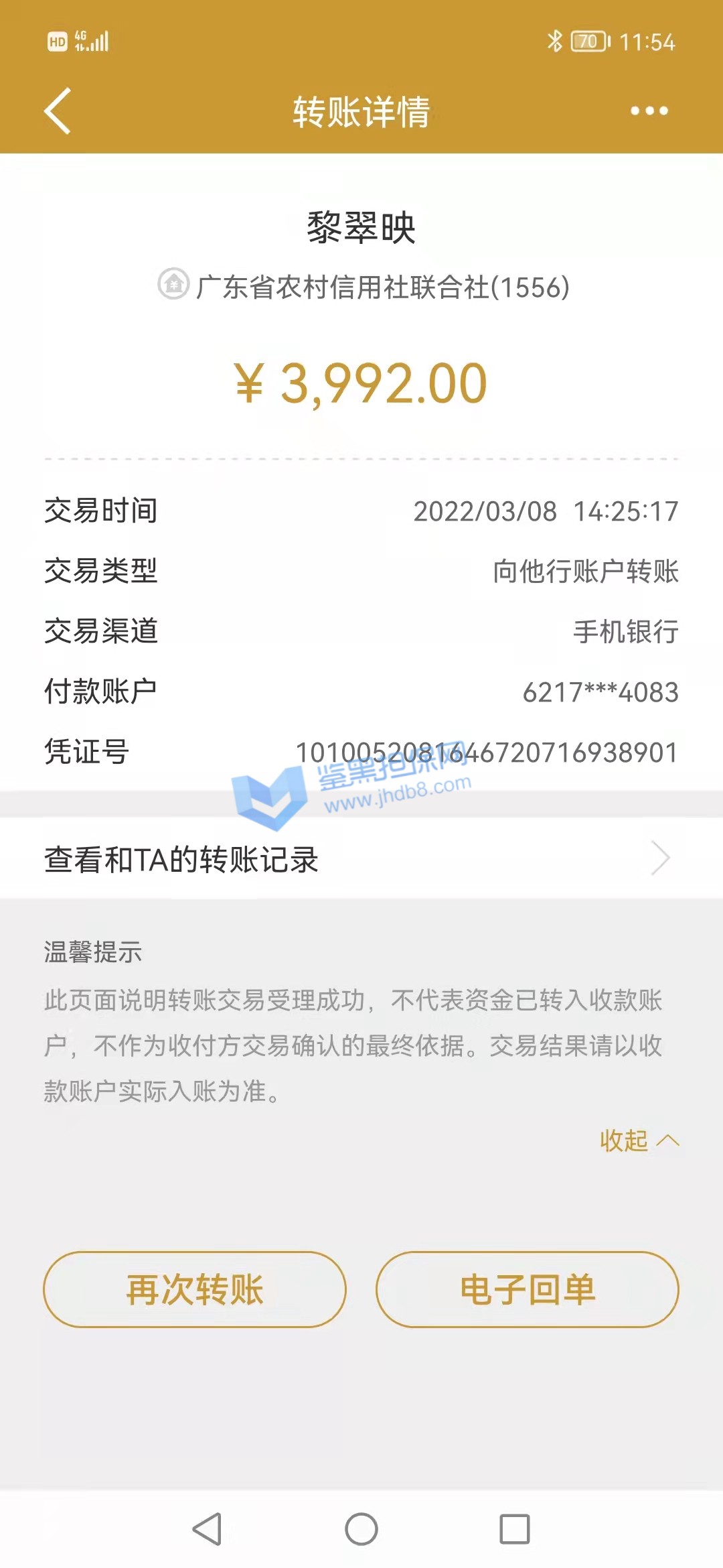 2.已受理的维权无法删除、撤销,鉴黑担保网将对维权事实进行核查验证并公开透明全过程,以保障维权双方的权益;