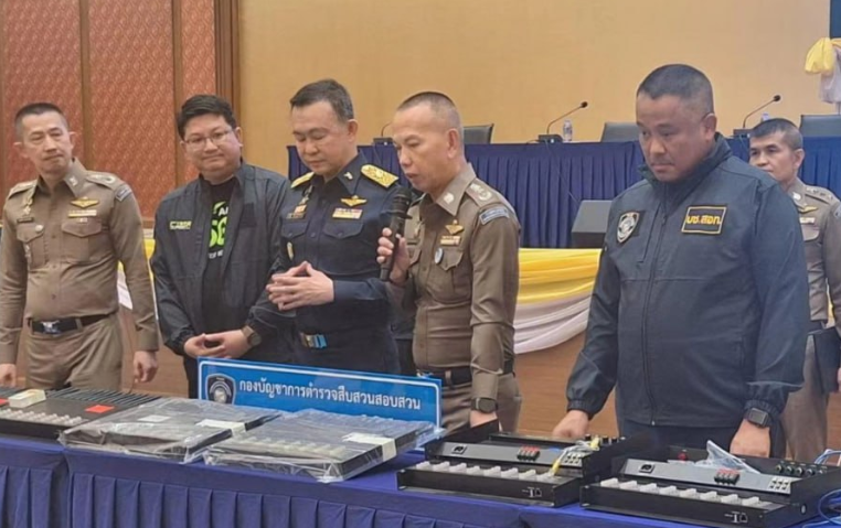 泰国国家警察总署署长多萨警上将与泰国工业联合会、泰国国家广播和电信委员会等,联合宣布抓捕一利用未经授权的通讯电台(sim box)进行电信诈骗的团伙。此类通讯电台常被不法分子利用为联络民众的渠道,属于高科技犯罪手段之一,同时也是现如今泰国境内的“大问题”之一,即电信诈骗团伙经常使用的工具。